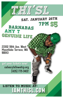THI'SL Concert Barnabas Amy T Genuine Life Saturday, January 26th @ 7pm $5 Admission