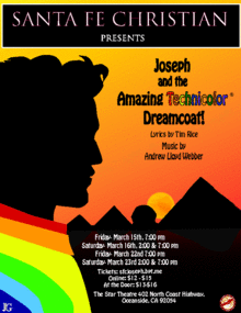 Santa Fe Christian School proudly presents Joseph and the Amazing Technicolor Dreamcoat. Joseph is an Andrew Lloyd Webber musical with lyrics by Tim Rice. The story is based on the "coat of many colors" story of Joseph from the Bible's Book of Genesis. Joseph is a well-known, popular story with meaningful themes and catchy music.