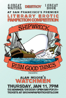 Are you tired of Earth? These People? Are you tired of being caught in the tangle of their lives? Don't move to the moon just yet: Shipwreck is finally doing Watchmen in San Francisco.
