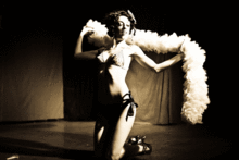 Learn to work a classic Burlesque prop: the fun, glamorous boa! Far from a simple costume element, the boa has a fascinating history and is the perfect tool for enhancing tease and creating sexy drama. We will provide each student with a marabou boa that you can take home. A perfect class for groups and parties!
