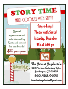 Santa, Mrs. Claus, and friends are coming to the The Arts at Angeloria's! This fun-filled afternoon includes milk and cookies during story time, a sing-a-long, holiday color pages, art activities, and a visit and photos with Santa!! Parents- have your phone camera ready! Santa and Mrs. Claus will happily take photos before and after the event. The Arts at Angeloria's with it's Victorian setting is the perfect place for your child to experience Santa! Join us!