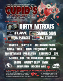 Stage Six Productions and Neon Rainbow Mindfuck Proudly Present Cupids Comeback a celebration of Dichotomy in love! Featuring DIRTY NITROUS, FLAVE, DJ ATUM, SMOKE SIGN, & DJPLEIADES!