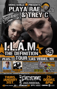 What: I.L.A.M. The Definition Tour Where: Cheyenne Saloon - Las Vegas, NV When: Thursday Jan. 31st. at 8pm Age: 21+ Cost: $5.00 (at the door)