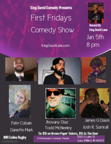 The First Friday of every month we put together a great lineup of stand-up comedy and/or improv. This month's show features King-David Lane as your host as well as Jhovany Diaz, James G Davis, Pate Cobain, Danette Mark, Todd McNeeley, & Josh R. Sumrall! Tickets are $10 if you buy in advance by clicking the link below or $15 at the door.