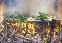 Accompanying the calçots we will have Butifarra (traditional catalan sausages) and grilled lamb and chicken