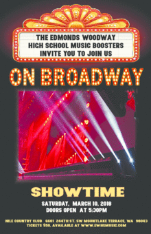The Edmonds-Woodway High School Music Boosters invite you to enjoy an evening On Broadway featuring our EWHS musicians. All proceeds benefit the stellar EWHS music program.