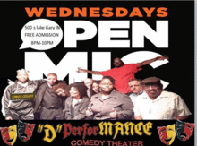 NWI's only comedy club hosts NWI's only Weekly Comedy Open Mic every Wednesday night. Ever wanted to try stand up comedy? Are you a current stand-up comedian or a sketch or improv performer? Do you just love to laugh? Come on out to the Lake Street Arts district in Miller to the D Performance Comedy Theatre. Special Guest hosts supplement the usual hosts King-David Lane, Mr 12 & 20, & Darryl Perfor Mance! No admission fee to watch or perform. All you pay for is your food & drink. First 15 Comedians are guaranteed 5 mins but several 7 & 10 min slots are available. Come get seen by guys who book shows in Northwest Indiana. Did I mention it's FREE? There's no reason not to come on down! Message the King to reserve a slot in advance or sign up at 8 pm after the doors open. #MillerBeach #GaryIn #GaryIndiana