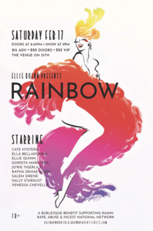 Join us for a burlesque benefit supporting RAINN (Rape, Abuse & Incest National Network). This show will feature acts set to Kesha's Rainbow album, and other acts of empowerment.