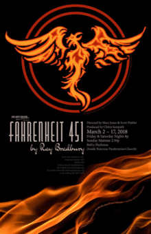 Fahrenheit 451 is the temperature at which paper ignites. With simple sets and uncomplicated staging, this powerful drama is about the inner struggle of Guy Montag, a fireman. Montag has worked as a civil servant for ten years burning books, but lately he has become increasingly unsure about what he is doing and about his vegetable-like existence. It is not until he meets 16-year-old Clarisse, who is filled with strange ideas, that he is led into a dangerous and highly combustible situation. Now he must choose between continuing his nonexistent existence and risking everything for the right to think.