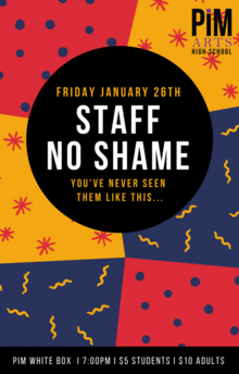Spend the evening watching our very popular, annual Staff No Shame. Once a year, staff members get to share the spotlight with students, alumni, and each other to celebrate art in our community. It's a night of laughter and memorable moments that you won't want to miss!