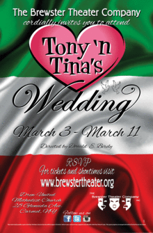 Tony n Tinas Wedding is an "environmental/immersive theater" event based on a traditional Italian-American wedding and reception, with warm and intrusive stereotypes exaggerated for comic effect. Audience members are treated as guests at the wedding by the interactive, improvisational comedy cast.