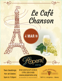 Le Cafe Chanson will feature music with a French flair highlighting the works of Jacques Offenbach, Cole Porter, Claude-Michel Schoenberg, and Alan Mencken among others.