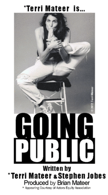 GOING PUBLIC, A solo show Going Public is about a 6' 2" blonde, ex-basketball player, who unpins her soul and lets the secrets of her ragged life fly free -- from pot smokin' Mom, to fighter pilot Dad, from a tycoon wielding boss to the sweetest child of spring.