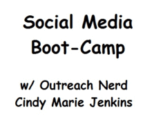 Theatre Asylum is excited to present the Social Media Boot-Camps with Outreach Nerd, Cindy Marie Jenkins. Learn how to turn your team into effective promoters, hone your pitch to the press, write a marketing strategy using your talents and create brand ambassadors to increase word-of-mouth. Cindy Marie Jenkin will run the interactive workshops, giving useful takeaways regardless of your budget or manpower.