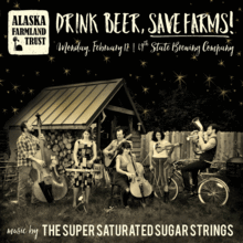 Join the Alaska Farmland Trust* for another fun event & fundraiser: "Drink Beer, Save Farms!" along with the talented Super Saturated Sugar Strings.