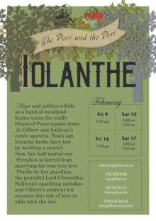 Magic and politics collide as a band of woodland fairies turns the stuffy House of Peers upside down in Gilbert and Sullivans comic operetta. Years ago, Iolanthe broke fairy law by wedding a mortal. Now, her half-mortal son Strephon is barred from marrying his own true love Phyllis by her guardian, the powerful Lord Chancellor. Sullivans sparkling melodies and Gilberts satirical wit animate this tale of love at odds with the law.