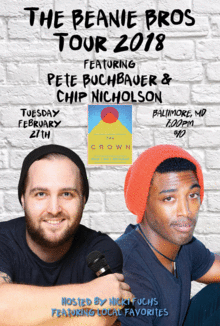 Pete Buchbauer and Chip Nicholson are two L.A. based comics with nationally recognized comedic chops, both have performed at The World Series of Comedy, and a penchant for headwear. Seeing 2018 as the perfect time to hit the road together they bring you the 2018 Beanie Bros Tour bringing their comedic styling on the road in late February and early March up and down the east coast.