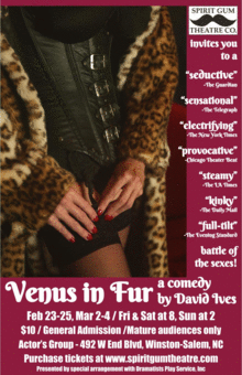 Thomas, a beleaguered playwright/director, is desperate to find an actress to play Vanda, the female lead in his adaptation of the classic sadomasochistic tale Venus in Fur. Into his empty audition room walks a vulgar and equally desperate actressoddly enough, named Vanda. Though utterly wrong for the sophisticated part, Vanda exhibits a strange command of the material, piquing Thomas' interest with her seductive talents and secretive manner. As the two work through the script, they blur the line between play and reality, entering into an increasingly serious game of submission and domination that only one of them can win. A mysterious, funny, erotic drama that represents yet another departure for the multifaceted David Ives.