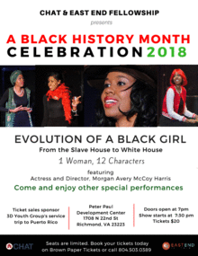 CHAT and East End Fellowship presents A Black History Celebration featuring Morgan Avery McCoy in Evolution of A Black Girl