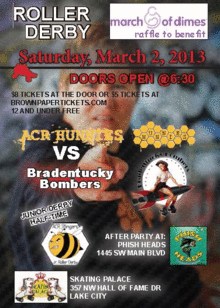 Join the Hunnies at the Skating Palace in Lake City as we play the Bradentucky Bombers for our first home bout of the 2013 season!