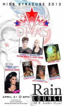 Miss Syracuse is the longest running pageant in central NY. The contestants will compete in Interview/Walk on/Formal Wear/Talent. This event is being held at Rain Lounge and there are limited seats available.