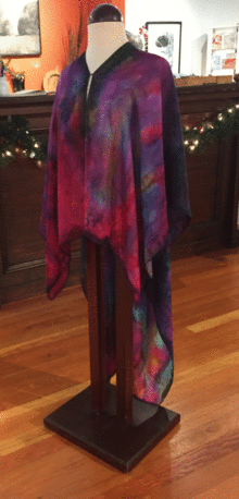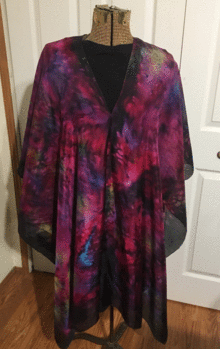 Sue Wachter will guide you through a process of "painting" with professional dyes to create a beautiful finished piece of wearable art. This design can go from a casual to formal look by wearing it a variety of ways.