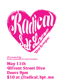 Back by popular demand! Greta Grenade and Lexa Lucious are at it again to bring you their second edition of RADICAL SELF LOVE: a burlesque celebration of just that: self-love.