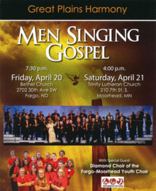 Spend the Evening with Great Plains Harmony, it's quartets and their special guest, The Fargo Moorhead Youth Choir, listening to some great gospel music. Songs that you grew up in Church with as well as some new songs you may not have heard yet!
