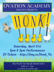 Ovation Academy is thrilled and delighted to present this charming adaptation of Honk! Perfect for ducklings old and young, Honk is one that you will not want to miss!