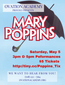 Ovation Academy is thrilled and delighted to present this charming adaptation of Mary Poppins. "Practically perfect in every way" for audiences old and young, Mary Poppins is familiar and one you will not want to miss!