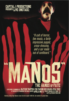 "Manos" The Hands Of Fate, is arguably one of the worst movies ever made.  Thanks to Mystery Science Theater 3000 for bringing Manos to popular culture, it has became a much loved and followed cult classic.  Capital I's production of Manos promises to be a smash.  Enjoy a live movie score by popular Portland band members from Blitzen Trapper, The Parson Red Heads and Viva Voce and a collection of hilarious Portland actors (see cast below) promise belly pains of delight.  This show is for lovers of bad movie, comedy, theater, music and just wild absurdity.  Like to laugh? Come out and enjoy it. You won't regret it.