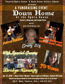 This Bi-Annual fundraising event will feature local artists, Steve Snider, Colleen Rufenacht and Go-Kart John, the witty humor of our own Grace Sly, and a local favorite, JD Evans.