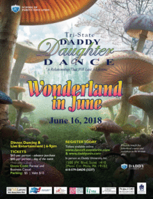 The Daddy Daughter Dance guarantees a memory that will last a lifetime. Daughters of all ages will dance the night away with the man of their dreams. Fathers and father-figures join us for a relationship that will last forever. Four Course Dinner,Live DJ, Live Band, Complimentary Photo, and Gifts. Purchase tickets here or call Brown Paper Tickets at 1800-838-3006.
