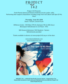 Project 142 Presents: Frank Ponzio (piano) and Eleanor Dubinsky (vocals, guitar, cello) Performing their original compositions including songs from Eleanor Dubinsky's new album Soft Spot Of My Heart