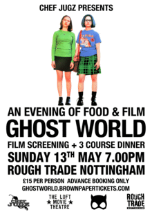 The ticket price includes a screening of comic book black comedy film Ghost World (starring Thora Birch, Scarlett Johansson and Steve Buscemi) and a three course American diner-style meal, lovingly prepared by Chef Jugz.
