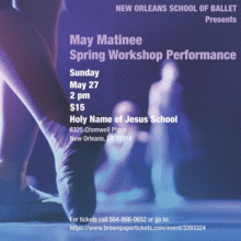 Our May Matinée Performance showcases the students of New Orleans School of Ballet (ages 3-17) in a celebration of New Orleans's Tricentennial with new ballet "Cakewalk" to the music of Louis Moreau Gottschalk!