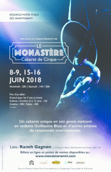 Le Monastère vous invite à ses soirées cabarets de cirque! Artistes aériens, jongleurs, contorsionnistes et bien d'autres talents d'ici vous émerveilleront. Des numéros présentés à l'état brut, tel que l'artiste l'a pensé et peaufiné à son meilleur. Le Québec héberge parmi les artistes les plus reconnus de la planète! Laissez-nous vous les présenter sur une scène chaleureuse et conviviale pour une soirée des plus mémorables!