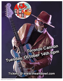 Join us on Tuesday, October 14th at 7pm for a LIVE smokin' Chicago Blues performance by Toronzo Cannon in the backroom with band on the bowling alley approaches allowing for more space for dancing and arm wrestling.