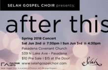 Pasadena Covenant Church 539 N Lake Ave Pasadena Ca 91101 Saturday June 2nd @ 7:30pm and Sunday June 3rd @ 4:30pm $10 tickets (Until June 2nd) $15 at the door