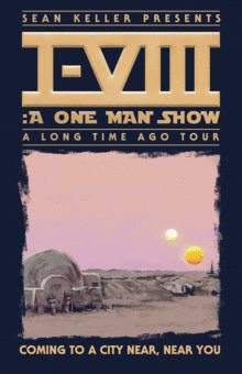 I-VIII: A One Man Show is a solo adaptation of the Star Wars saga (episodes I-VIII), imbued with actor/writer/comedian Sean Kellers unique humor and spot-on vocal impressions. Both casual fans and diehards alike will love this R-rated spin on a galaxy far, far away.
