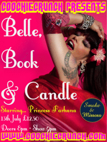 Creatures of the Night, CoochieCrunch is delighted to welcome.... BELLE, BOOK & CANDLE all the way from Los Angeles, to Smoke and Mirrors for an extra special show this July Friday 13th. Conjured from the minds of Princess Farhana and Shala Leilani, this legendary event entwines magickal workings with the art of burlesque and cabaret to create a space wholly unique. Each performance features an onstage ritual as well as tarot readings and sumptuous erotic ecdysiasts!