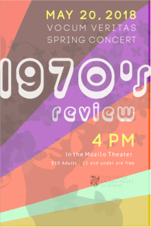 The music department presents its Spring Concert featuring the award-winning VOCUM VERITAS. Come and experience music from the 70's with FSHA choir's "1970's Review", VOCUM VERITAS, in their final concert of the season. Come at 3pm for light refreshments before the show!