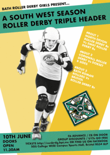 First bout - 12pm - North Devon Roller Derby Bs vs SWAT Roller Derby Bs Second bout - 2pm - Cornwall Roller Derby Vs Dorset B Sides Third bout - 4pm - Bath Roman Rollers Vs Bristol Roller Derby Bs