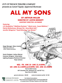 Out of the Box Theatre Company, now in its 11th season, presents Arthur Miller's drama ALL MY SONS. This Equity Showcase production is directed by Justin Bennett.