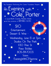 To benefit North County Theatre Works and their production of the musical, ANYTHING GOES, by Cole Porter.