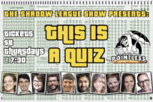 Come on down to Pointless for our Thursday night special, the Shadow League Show! This weekly show includes some of the best up-and-coming improv talent in the area, featuring the newest Pointless Shadow League, This Is A Quiz (may or may not actually include a quiz).