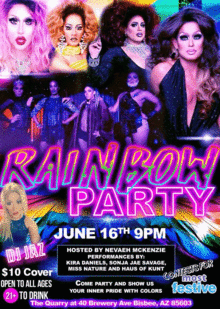 Saturday June 16th (Hosted by: Nevaeh McKenzie) will be our Rainbow Party. All things rainbow. This will be the highlight of the three events where we hope to put the emphasis in PARTY! Don't miss out on what is sure to be a memorable night. The fun will begin at 9pm! In this show is some of Arizona's best entertainment.... Sonja Jae Savage, Nevaeh McKenzie, Miss Nature, Haus of Kunt, Vanity St James and Faleasha Savage!