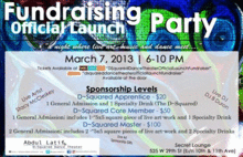 Celebrate a night of live art exhibition, good music and dance as Abdul Latif & D~Squared Dance Theater kick-off their official Launch Party with a night of fundraising. Artistic Director of D~Squared Dance Theater Abdul Latif, supported by the Rockefeller Brothers Foundation and Lincoln Center Institute, invites you to toast the early achievements of D~Squared Dance as you dance to the beats of DJ B Duron (http://www.facebook.com/pages/DJ-B-Duron/139318756133430) on March 7, 2013 at Secret Lounge in Chelsea from 6-10pm.
