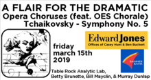 The Oregon East Symphony and Chorale return to perform "A Flair for the Dramatic" on Friday, March 15th. Conductor Beau Benson will lead the Symphony in a performance of Tchaikovsky's Fifth Symphony. The Chorale will join the Symphony is a performance of opera choruses including the Huntsmans' Chorus from Weber's "Der Freischütz", the Bridal Chorus from Wagner's "Lohengrin", Triumphal March from Verdi's "Aida", and many more.