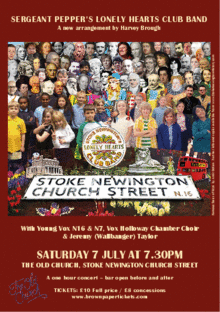 Young Vox perform the entire Beatles album with Vox Holloway Chamber Choir, the David le Page Ensemble (7 musicians) and Harvey Brough and Jeremy Taylor - vocals.